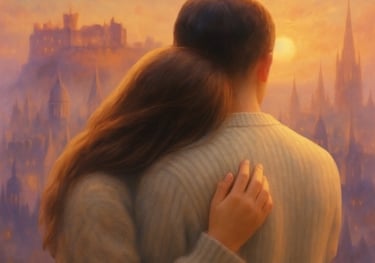 Di lantai dua, tampak plakat logam kecil bertuliskan Star & Haven Counseling — Marriage & Emotional Recovery Practice. Dari dalam jendela kantornya terlihat atap-atap tua kota, menara St Giles Cathedral, dan kabut tipis yang menelan sinar pagi.