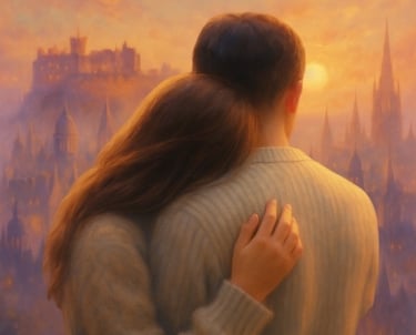 Di lantai dua, tampak plakat logam kecil bertuliskan Star & Haven Counseling — Marriage & Emotional Recovery Practice. Dari dalam jendela kantornya terlihat atap-atap tua kota, menara St Giles Cathedral, dan kabut tipis yang menelan sinar pagi.